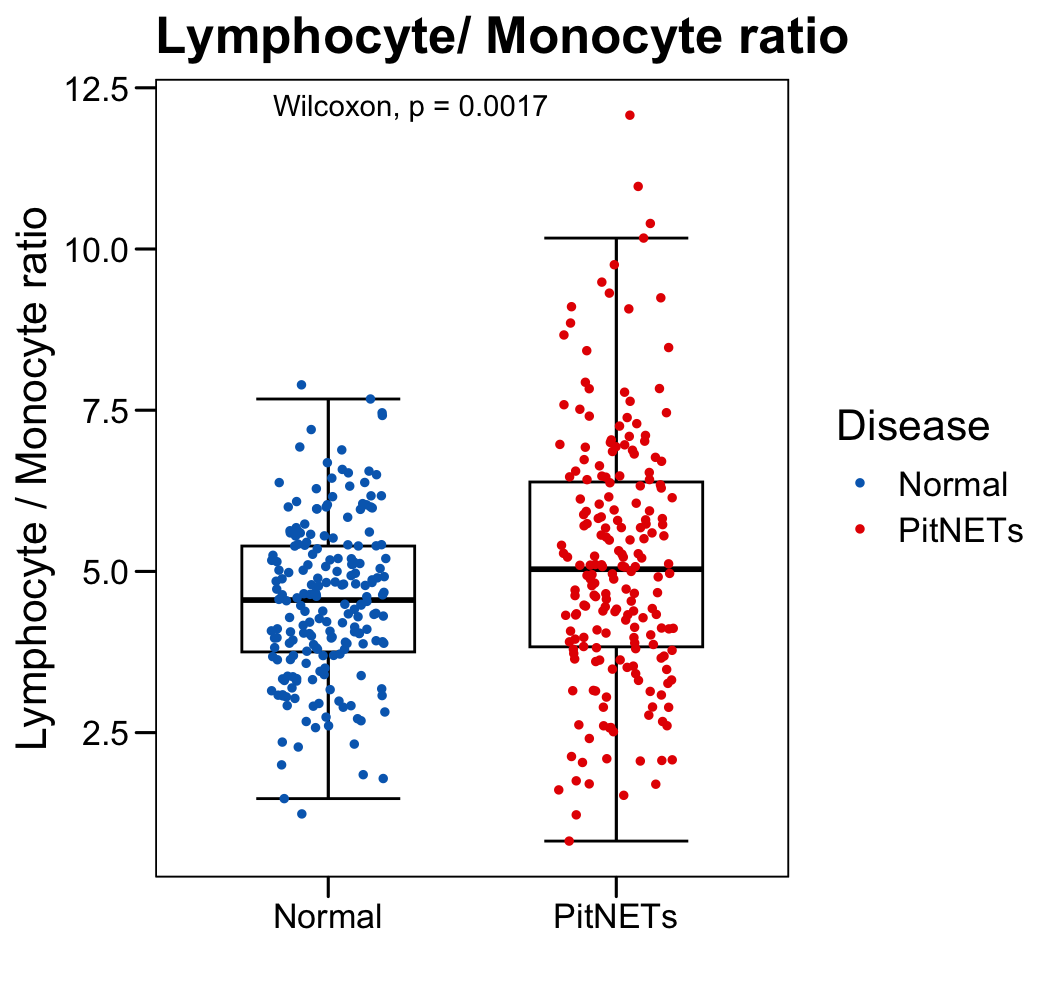 x = "Disease", y = "Lymphocyte._.Monocyte.ratio",