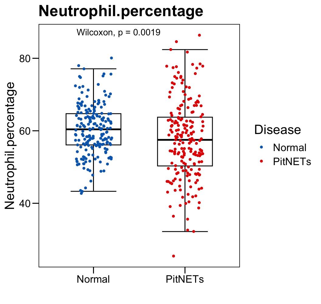x = "Disease", y = "Neutrophil.percentage",