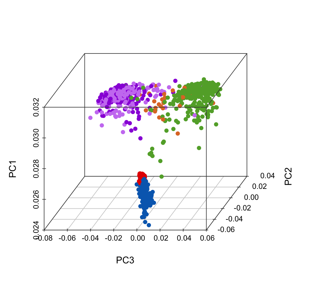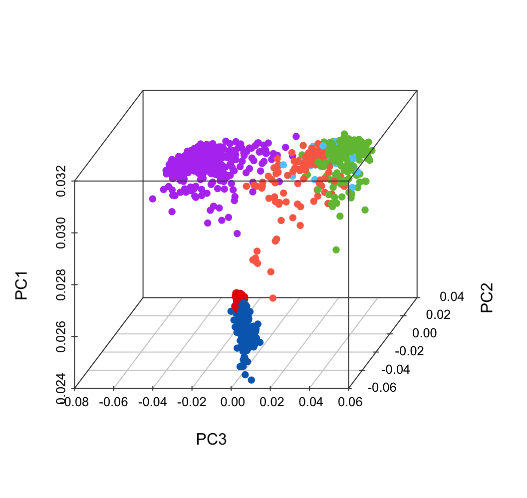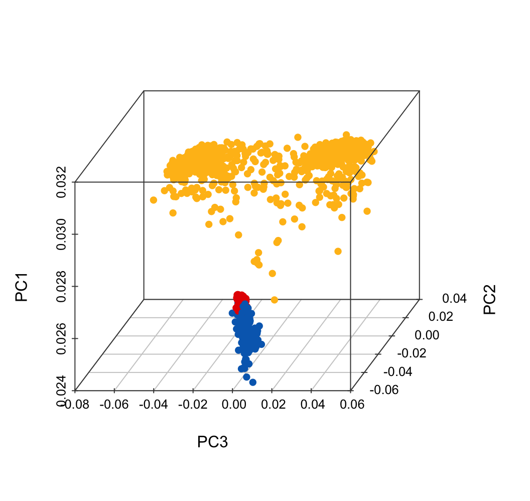 xlab = "PC3", ylab = "PC2", zlab = "PC1",
